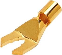 Kvalitní zlacená vidlice pro 4-6 mm2 kabel. Šířka otvoru pro terminál - 6 mm, celková šířka 13 mm.